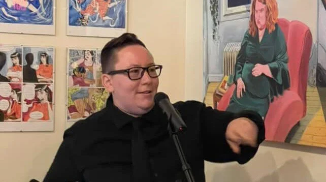 Mx. Asher performing spoken word at the Trans Artist Showcase in Boston 2025